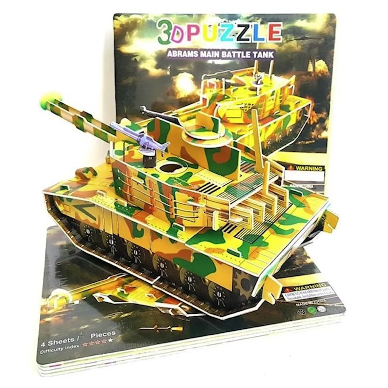 Подгответе се за возбудлива тактичка авантура со нашата 3D Сложувалка – Abrams Main Battle Tank! Овој модел претставува детализирана минијатура на еден од најпознатите и најмоќни тенкови во современата воена историја – Abrams. Совршен избор за љубители на воена техника, моделирање и тродимензионални сложувалки, овој сет овозможува не само забава и предизвик, туку и визуелно впечатлива реплика на компактен формат. Идеален е за деца, тинејџери, колекционери и возрасни кои сакаат да создадат реалистичен модел, без потреба од лепак, алати или сложени материјали.