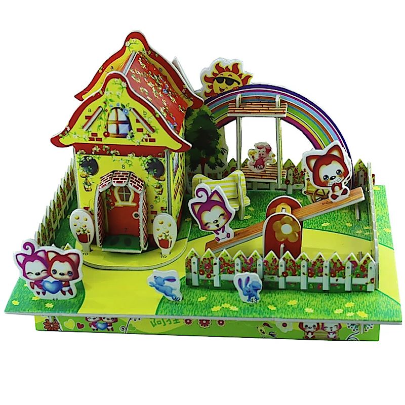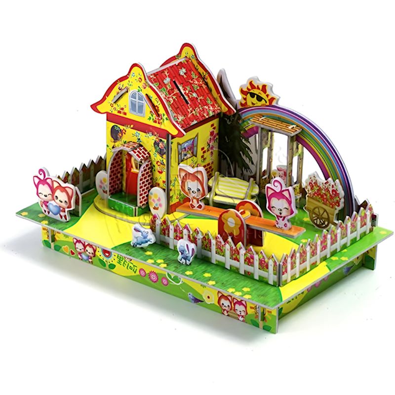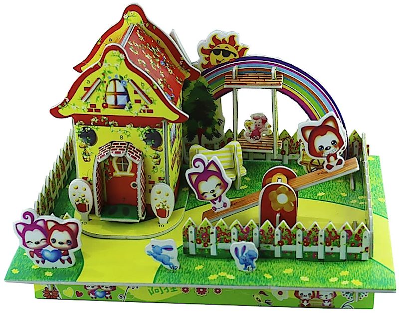 🏠 Димензиите на склопениот модел се 17cm x 22cm x 27cm, што ја прави совршена за поставување на полица, биро или како украс во детска соба. Куќата е богато детализирана – со прозорци, врата, покрив и малку дворче околу куќата каде мачките можат да „си играат“. Секој агол на моделот е внимателно обработен за да создаде впечаток на минијатурен, бајковит свет кој ќе плени со својата топлина и шарм.