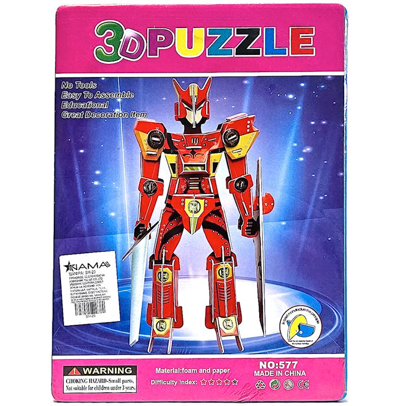 Темата на оваа 3D сложувалка ја носи популарната визија на херојски робот, облечен во црвена боја, кој се бори со злото и го штити својот свет. Дизајнот е динамичен и полн со акција – со агресивни линии, робусни детали и модерни технолошки елементи. Секој дел е внимателно осмислен за да создаде чувство на моќ, авантура и енергија. Роботот стои како централна фигура, со склопени делови што создаваат впечатливи визуелни ефекти. Деталите, од рамките на роботските екстензии до шарените панели, се внимателно обработени за да внесат чувство на реалност и интерактивност.