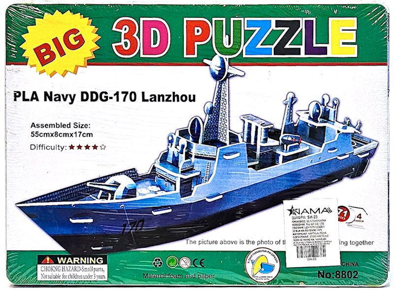 Темата на оваа 3D сложувалка ја прикажува импресивната кинеска морска флота преку борбениот брод DDG-170 Lanzhou. Моделот го претставува бродот со сите негови клучни детали – од палубата, радарските и навигациските системи, до орудијата и други специјализирани делови. Секој елемент е внимателно дизајниран за да создаде автентична минијатурна реплика што плени со својата прецизност и реализам. Бродот, како централна фигура, создава чувство на моќ и стратешка авантура, а деталите го прават спектакл за сите љубители на морска техника и воени бродови.