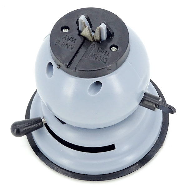Алатката е исклучително лесна за користење, благодарение на вградениот механизам за вакум може да ја фиксирате на било која рамна површина, и со едноставно поставување и повлекување на сечивото во острилката вашите ножеви ќе ги изострите за миг.