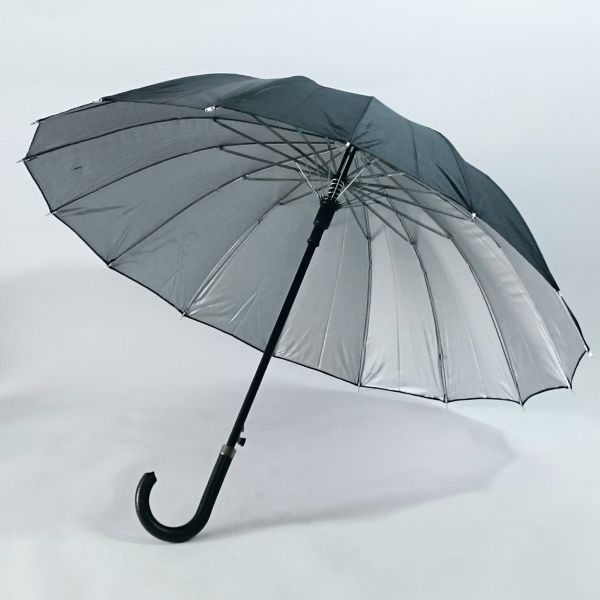 Овој чадор е вистински аксесоар за секој модерен господин. Црн од надвор, сребрен од внатре. Чадор со кожна (еко-кожа) рачка совршен за дождливиот период.