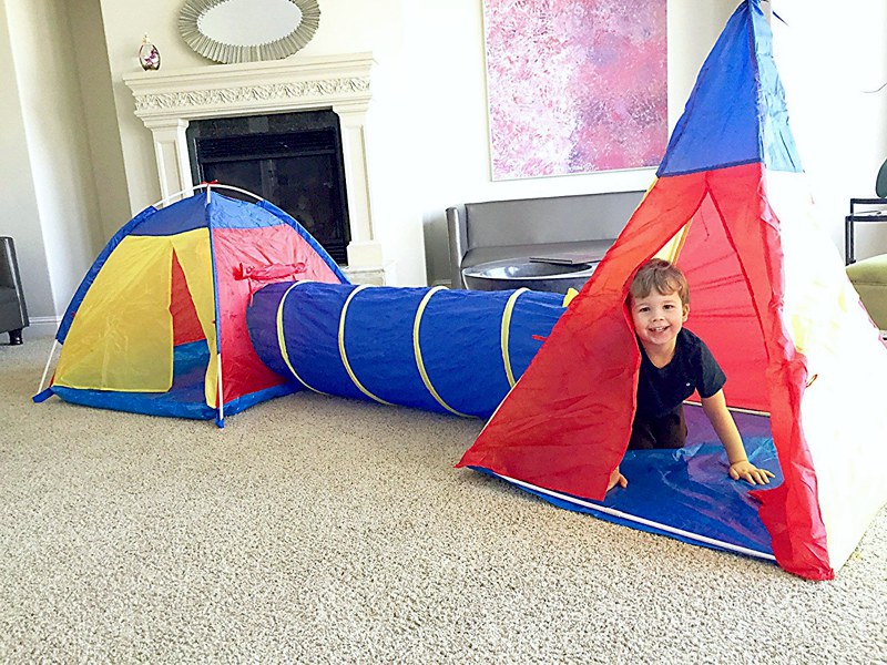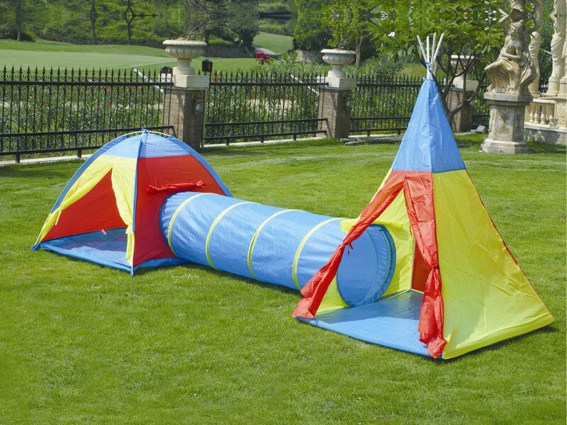 Прекрасен, функционален и преносен сет од два детски шатори поврзани со тунел, создадено за авантури.