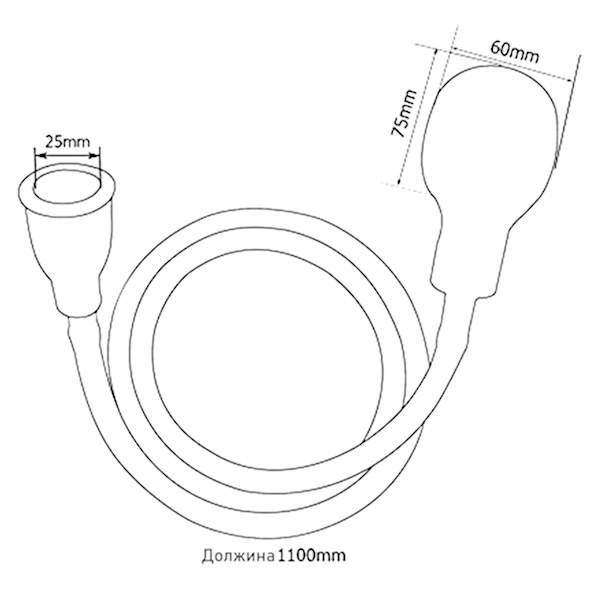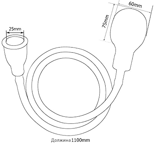 Додатокот се состои од еластично црево со должина од 110 см, со еластична стега од едната и туш од другата страна.