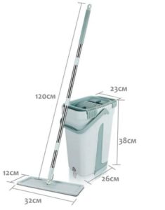 Комплет џогер и кофа со сопствен систем за чистење на крпата изработена од микрофибер влакна.
