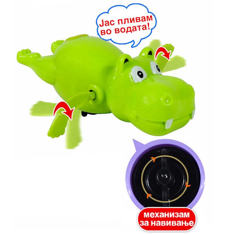 Играчката има вграден механизам за навивање, со кој играчката ги мрда екстремитетите со што се овозможува животното да плива воводата. Нема потреба од батерии само го навивате механизмот и бањата може да започне.