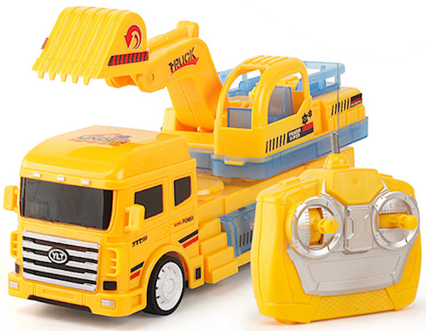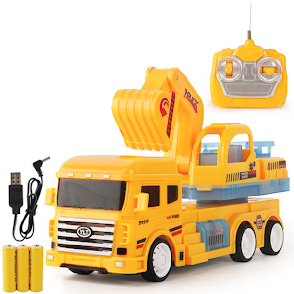 Камион со Булдожер на далечинско управување со вградени батерии кои се полнат.