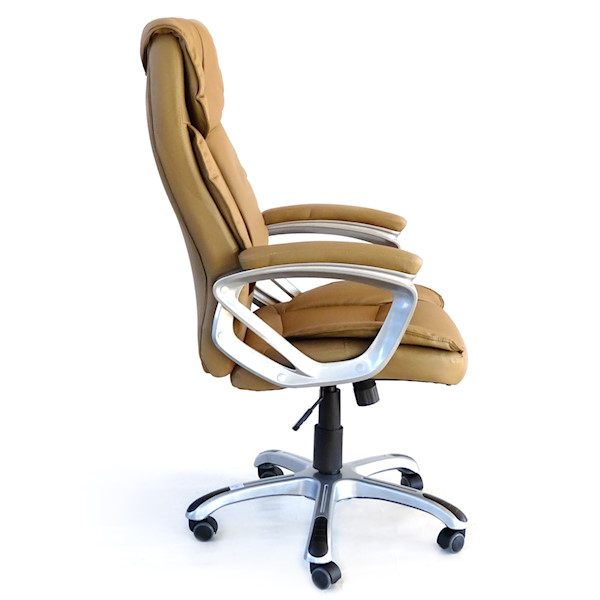 Високо квалитетен канцелариски стол-фотелја со модерен ергономски дизајн. Црвста (Heavy Duty) конструкција обложена со високо квалитетна еко-кожа, има механизам со рачка за подесување на висината горе-доле, амортизер за навалување напред-назад, ротација лево десно за 360º и ѕвезда со 5 тркала..