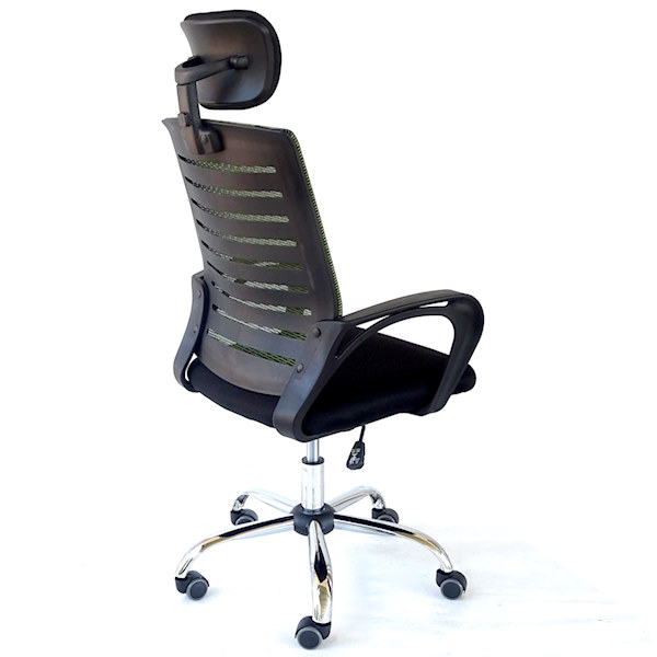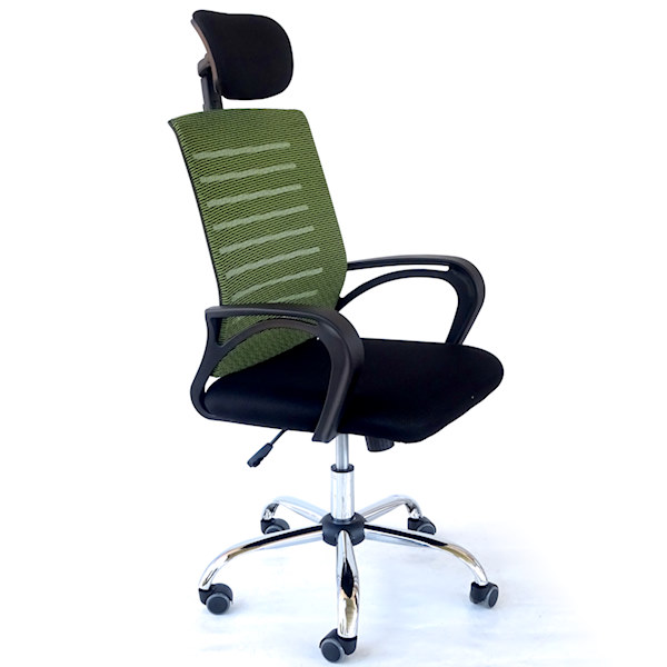Kвалитетен канцелариски стол со ергономски дизајн и наслон со прекрасен мрежест зелен штоф.