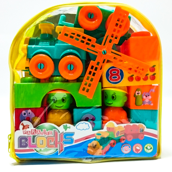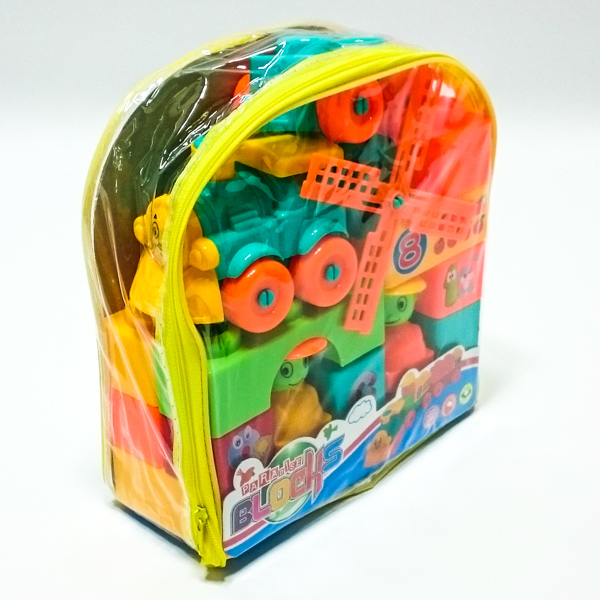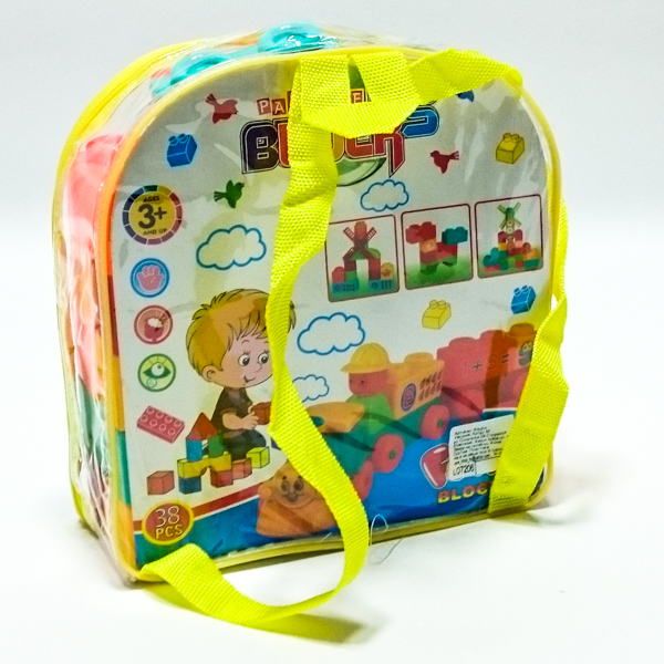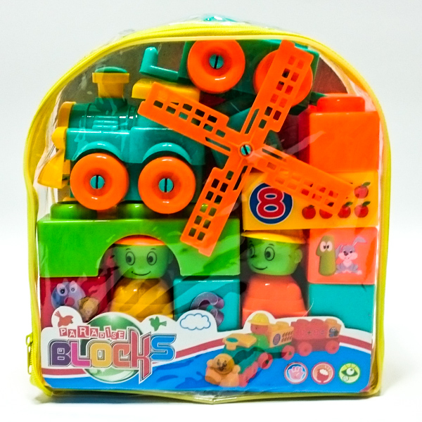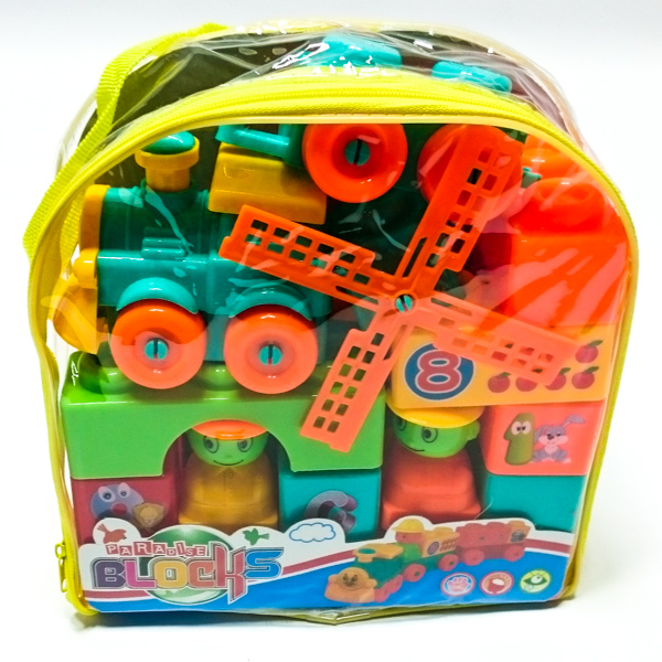 Сет коцки за деца во разни бои,со локомотива и фигури.
