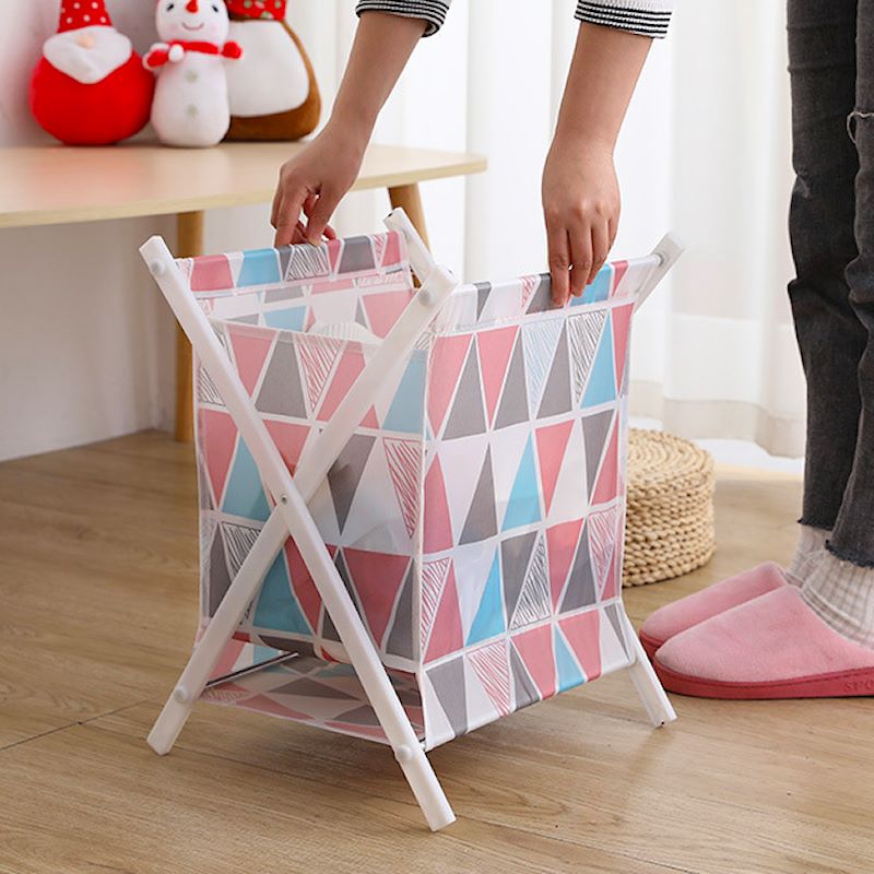 Благодарение на специјалната изработка и дизајн, корпата може да се склопи и не зазема многу место кога е вон употреба. А со ногарките е погодна да ви стои и во купатилото без да се плашите дека ќе се наквасат стварите.