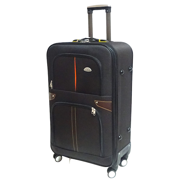 Квалитетен платнен куфер, со тркалца и рачка, плус механизам со бројки за заклучување.