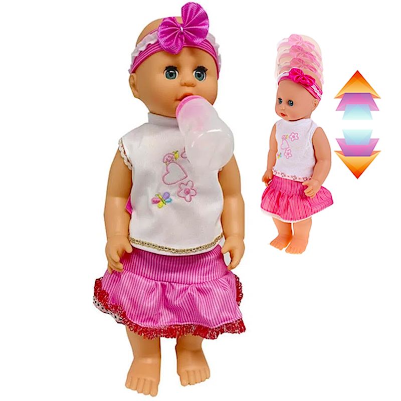 Куклата плаче, цокоти, кога спие хрчи, и најважното пие млеко и кога ќе го испие пораснува за 5см.