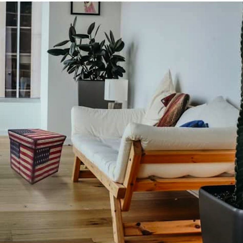 Кутија – табуретка за седење и складирање реквизити. Прекрасно стилизирана на тема знамето на САД – USA flag.