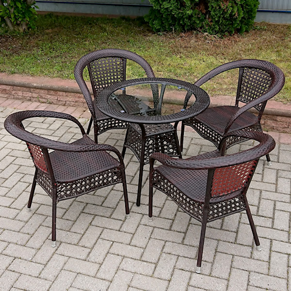 Летна гарнитура за седење со маса, од плетен пластичен ратан.
