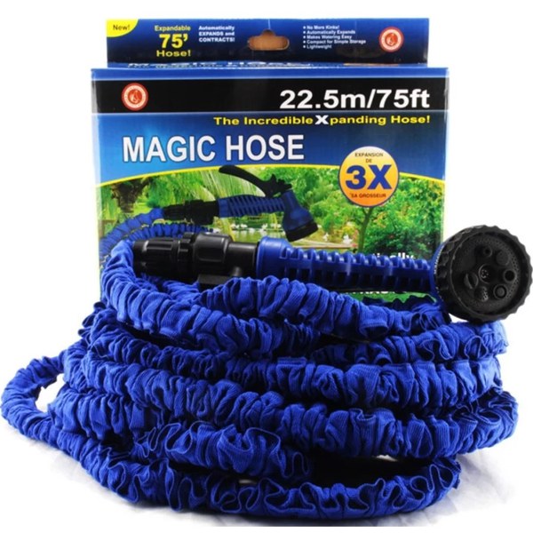 Магично црево кое кога е соберено не завзема многу простор, а по потреба истото може да се издолжи до 22.5 метри.