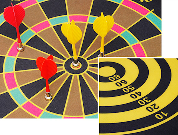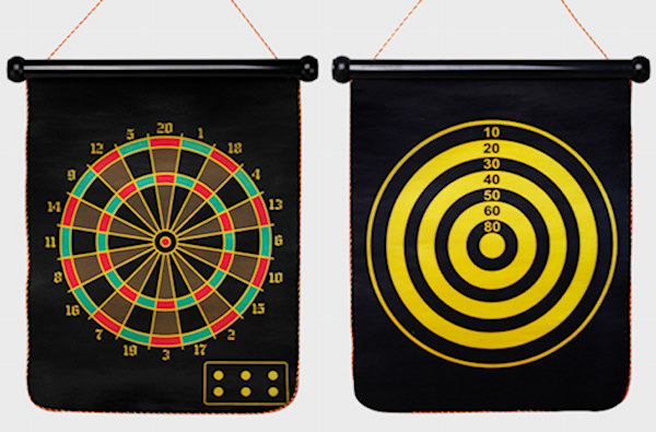 Сет за пикадо со магнетни стрелки. Подлогата е двострана и од секоја страна има различна мета, а воедно многу лесно може да ја поставите на ѕид.