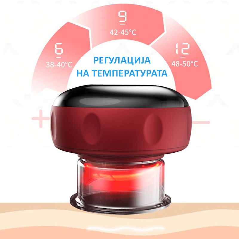 Запознајте го Масажерот – Интелигентна Вендуза, иновативен уред со највисоки стандарди за квалитет и безбедност, потврден со CE, RoHS, FCC и FDA сертификати. Оваа интелигентна вендуза е дизајнирана да обезбеди врвна релаксација и терапија за вашето тело со функција за електронско всмукување, топлинска терапија и акупунктурен масажен ефект, што овозможува мускулна релаксација и ослободување од стресот.
