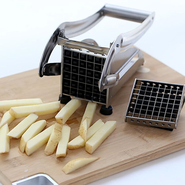 Машинка за помфрит со два ножа за идеално исецкан компир. Освен компир, може да сецкате и зеленчук и овошје, за салати и гарнир. Машинката е исклучително лесна за користење и чистење.