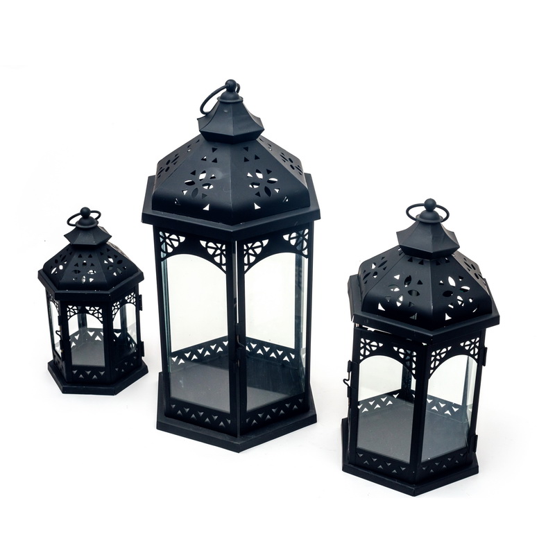 Сет од три стилски метални фенери идеални за важиот дом, двор или тераса….