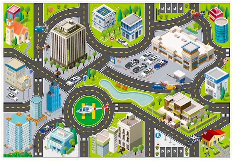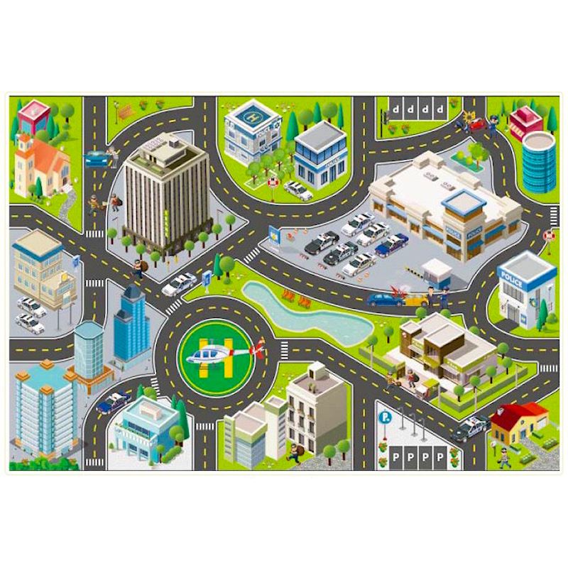 Благодарение на дезенот со улици, идеална е за возење и паркирање колички по истата.