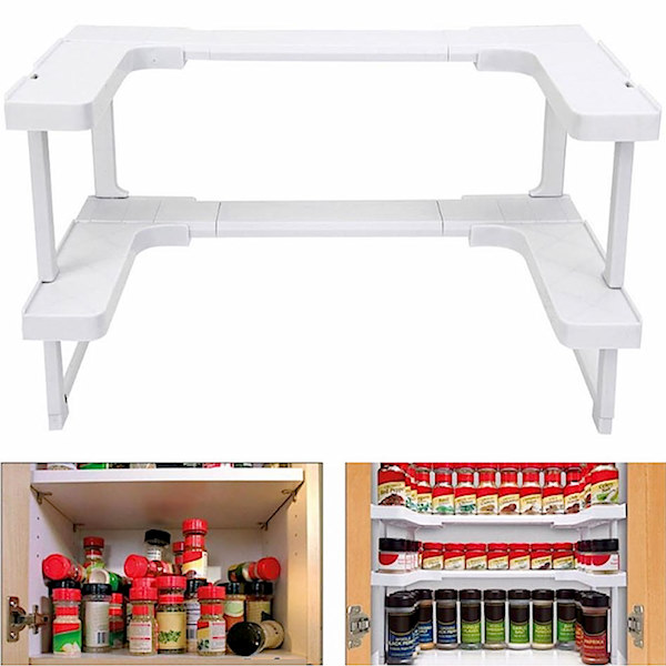 Иновативен прилагодлив организатор со кој конечно ќе го подредите вашиот шкаф, а теглите и зачините секогаш ќе ви се при рака. Воедно ќе го максимизирате просторот и ќе ја зголемите ефикасноста во вашата кујна. А покрај во кујната може да го користите и во бањата, спалната итн…