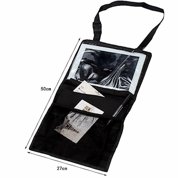Исклучително практичен организатор со џебови и комора за таблет со фолија осетлива на допир, кој со леснотија може да го поставите на задната страна на вашето автомобилско седиште.
