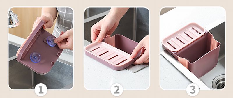 Иновативен и ултра практичен производ со кој конечно вашите есенцијални кујнски реквизити секогаш ќе ви се на дофат. Сунѓерот, четката, крпата, средството, ви стојат спремни за акција за дел од секундата, сега конечно може да ги измиете или исперете садовите, со голема леснотија.