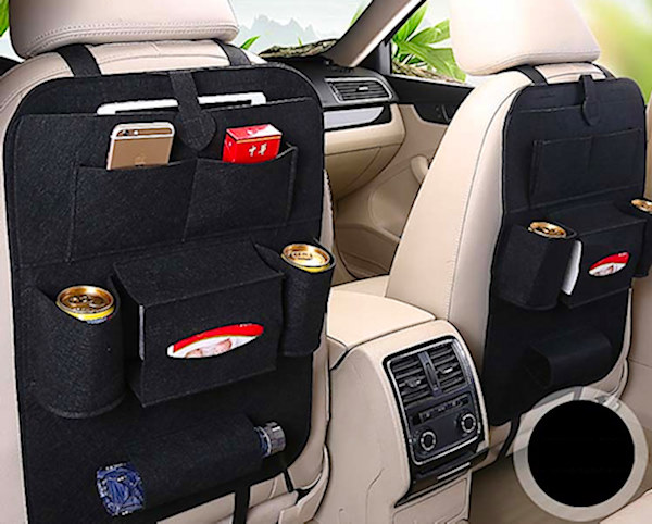 Организер кој се поставува на задниот дел од седиштето во автомобилот, погоден за поставување на таблет, мобилен телефон, држач за за термос или чаша, како и преграда за чадор и сите останати предмети.