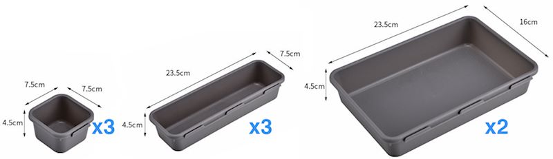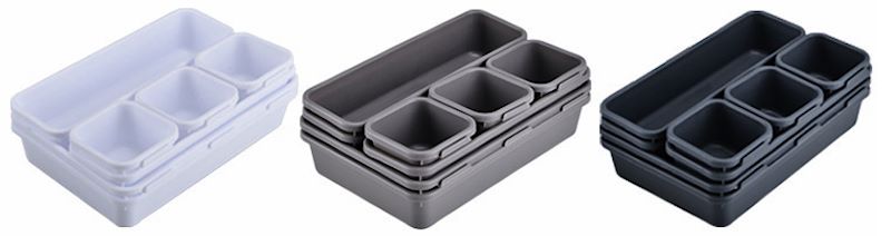 Сите организери имаат унифицирана висина од 4.5cm, што ги прави идеални за поставување во фиоки од различни димензии. Оваа разновидност овозможува да ги прилагодите според вашите потреби, создавајќи совршен ред во секој простор.