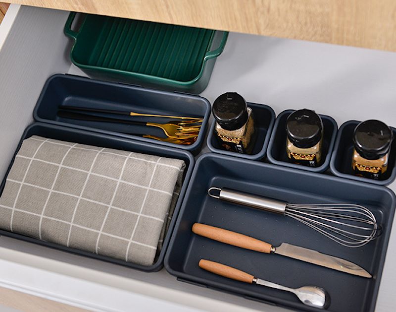- Во кујната: За уредно чување на прибор за јадење, зачини, мали кујнски алатки или ќесички со храна.