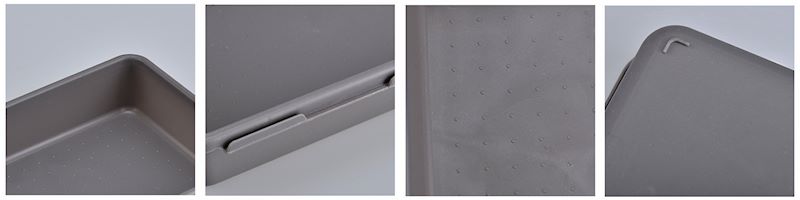 - Анти-лизгачки основи, што обезбедуваат стабилност дури и при поставување во плитки фиоки.