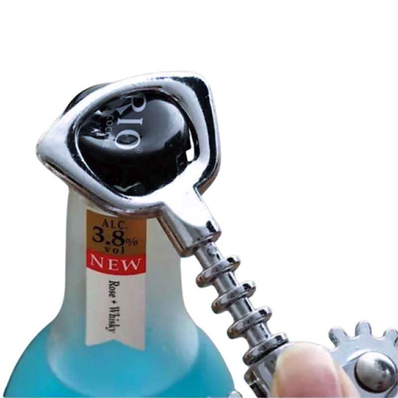 Дебелиот механизам со зајакнати запчаници го спречува лизгањето, додека цврстите нитни помеѓу главата и крилата обезбедуваат долготрајност и безбедност при употреба. Не’рѓосувачката челична спирала е отпорна на кршење, што гарантира дека секој пат ќе можете да го отворите шишето без проблем.