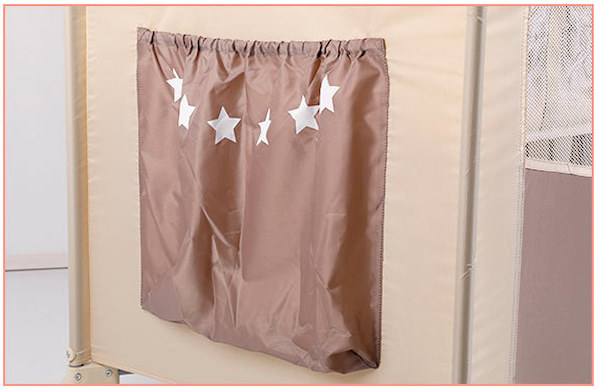 - Страничниот мрежест материјал е проѕирен, овозможува циркулација на воздухот и мониторинг на детето.