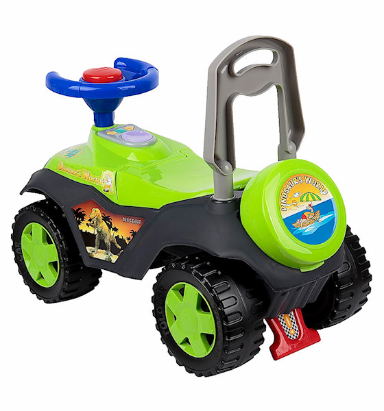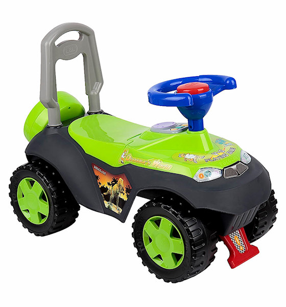 Ергономска рачка на задниот дел и Ергономското седиште кое се подига и има практична комора за складирање играчки и реквизити.