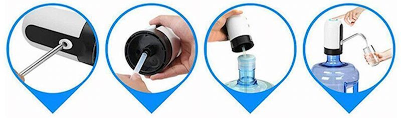 За разлика од обичните пумпи-диспензери овој е автомтски има вградена батерија од 1200 ма која може да ја полните преку УСБ кабел.