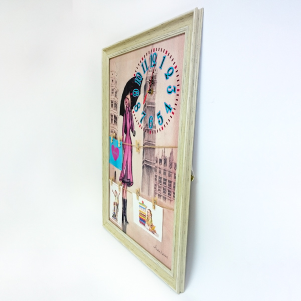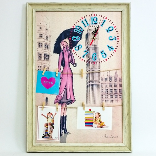 Комбинирана, модерна, рамка со часовник за повеќе фотографии кои се прикачуваат на уникатен начин со штипки.