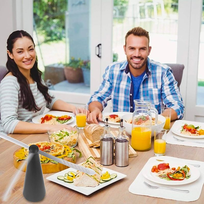 Иновативната 360° ротација на лопатките овозможува континуирана заштита од сите страни, обезбедувајќи чиста и пријатна атмосфера на вашата трпеза.