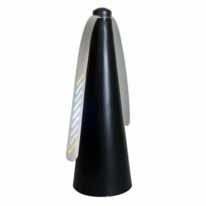 Овој уред функционира како мултифункционален вентилатор со автоматски ротациски лопатки и паметна технологија што на природен начин ги одбива инсектите. Со својот модерен дизајн и пренослива изведба, тој е идеален за секојдневна употреба во затворен или отворен простор.