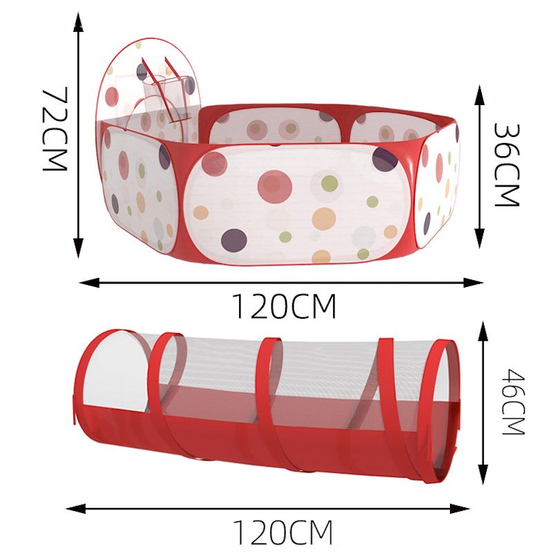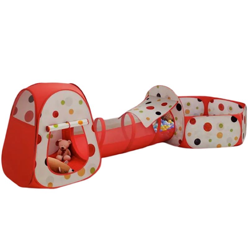 Шаторот за играње со тунел е идеално катче за игра, креирано да ги поттикне креативноста и физичката активност кај децата. Со својата цврста конструкција, леснотијата на поставување и практичноста на користење, овој сет е совршен за секој дом, двор или јавен простор. Тој ќе стане омилено место за вашите деца, каде што ќе можат да играат, истражуваат и уживаат во своите фантазии.