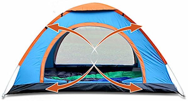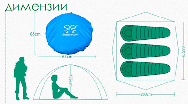 Во шаторот комотно може да се сместат и спијат три возрасни особи или двајца возрасни и две деца.