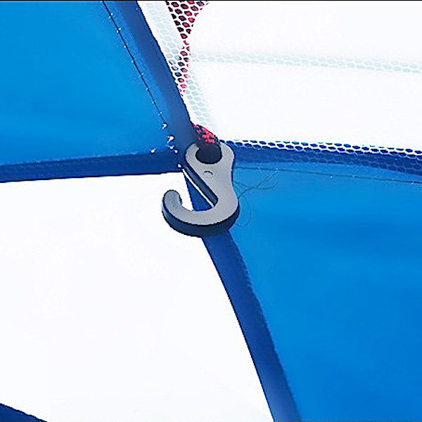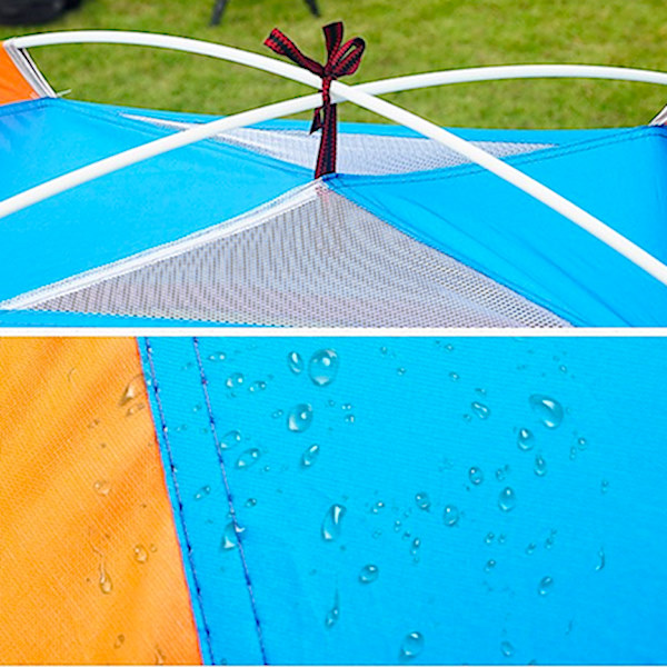 Шаторот е изработен од високо квалитетни материјали, водоотпорна ткаенина со УВ заштита, има двојна постава и патенти, систем за вентилација, заштитна мрежа за инсекти, две врати на патент, иновативна конструкција со челични шипки, чанта за носење и складирање, додатоци за прицврстување.