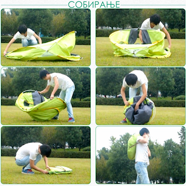 И за крај кога ќе завршите со кампувањето шаторот без мака може да го склопите во чантата, до следната прилика.