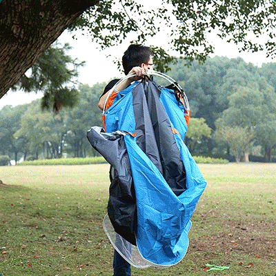 Се што треба да направите е да го извадите од чантата и да го фрлите во воздух и шаторот сам ќе се постави.