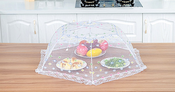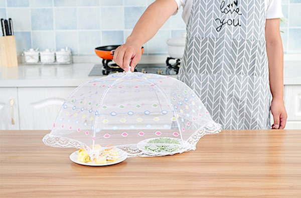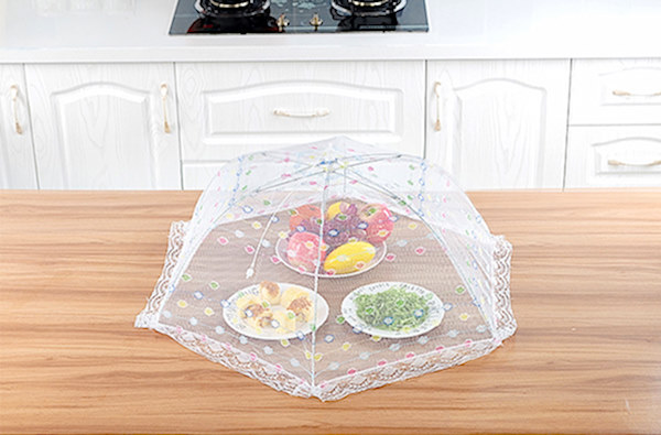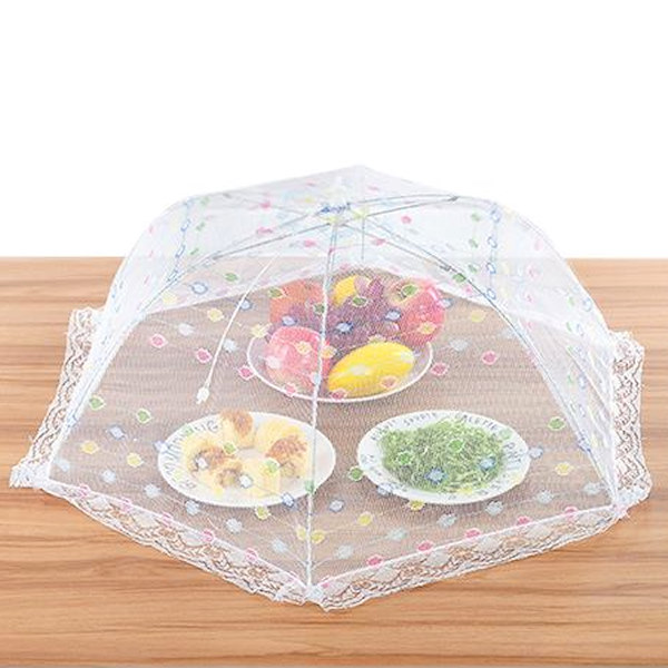 Штитникот за храна иработен од ткаенина со прекрасен дезен кој се отвара како чадор ќе ви помогне да ги заштитите вашите специјалитети од досадните инсекти.