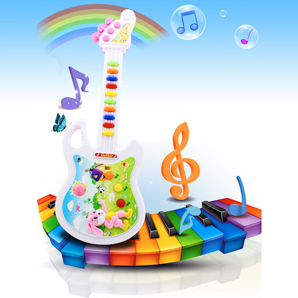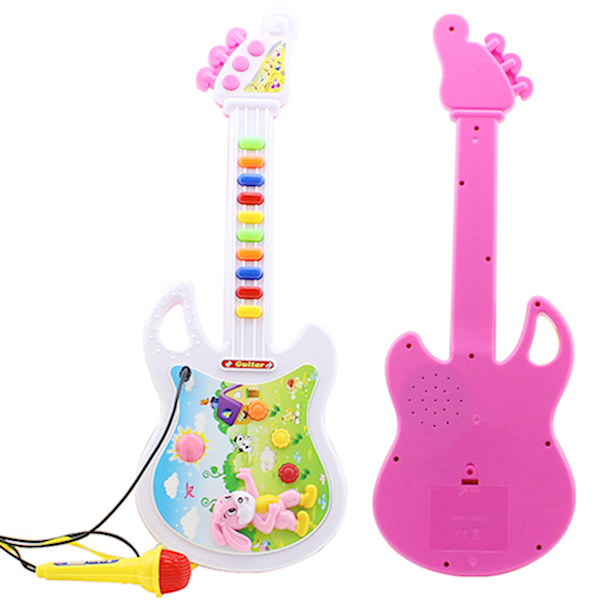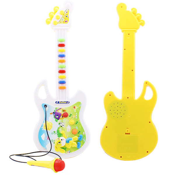 Оваа гитара синтисајзер со микрофон свири мелодии, звуци, тонови и свети.