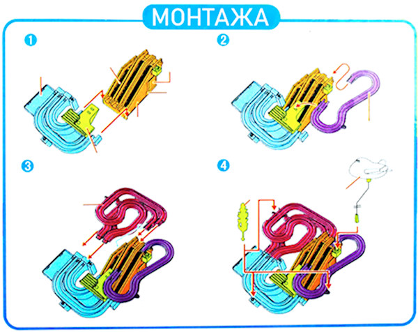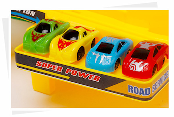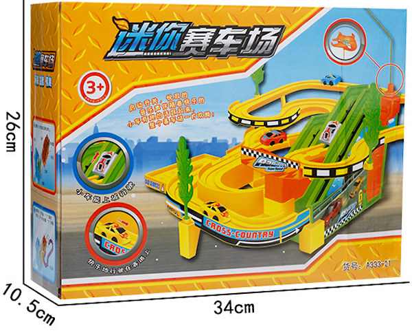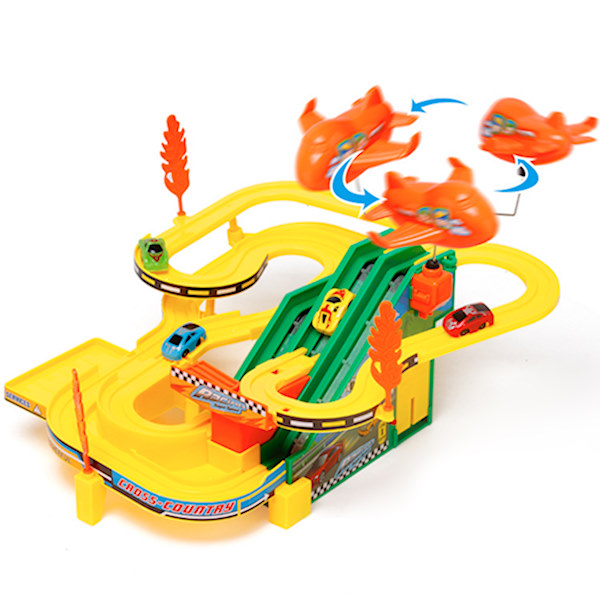 Музичка кинетичка играчка, со 4 автомобили кој се состои од платформа со патека за возење во форма на тобоган и четири автомобили кои неуморно се качуваат на врвот и се спуштаат по патеката.