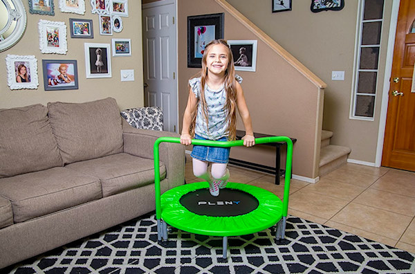 Високо квалитетна, детска трамбулина со рачка за држење.