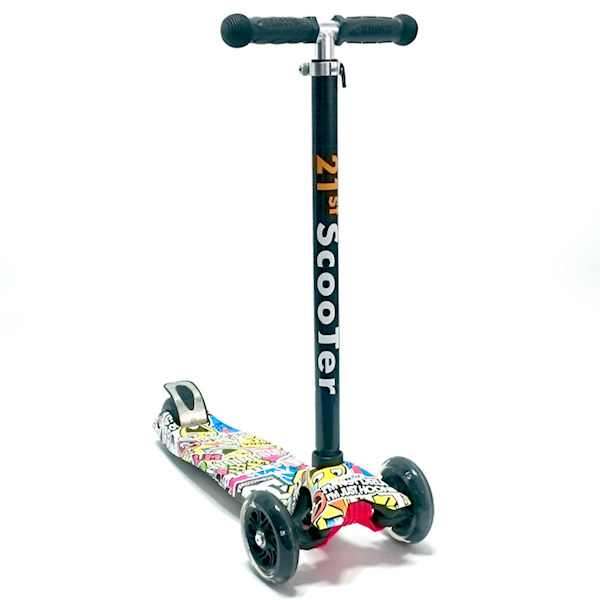Тротинетот е достапен и без дезен во плава, розева, зелена и портокалова боја.