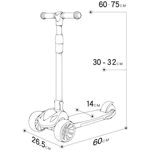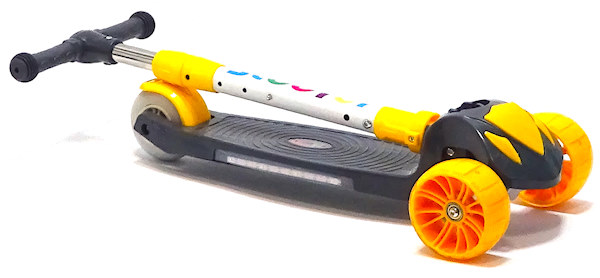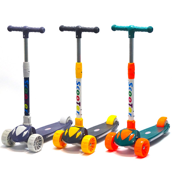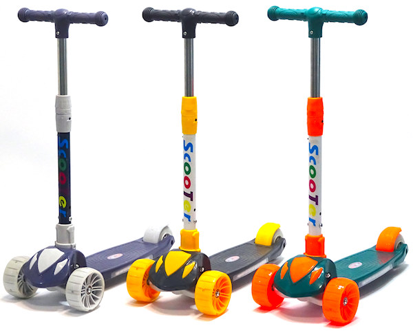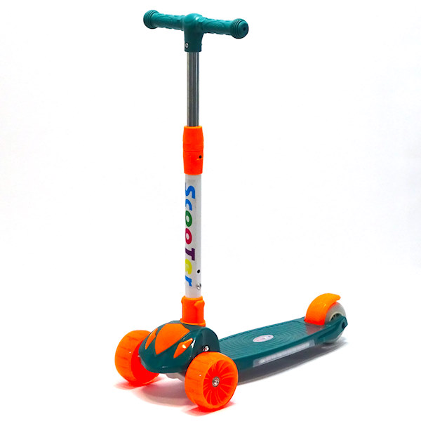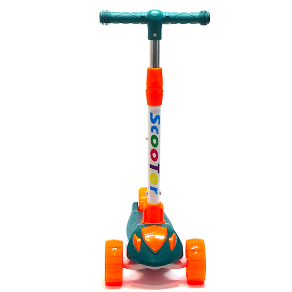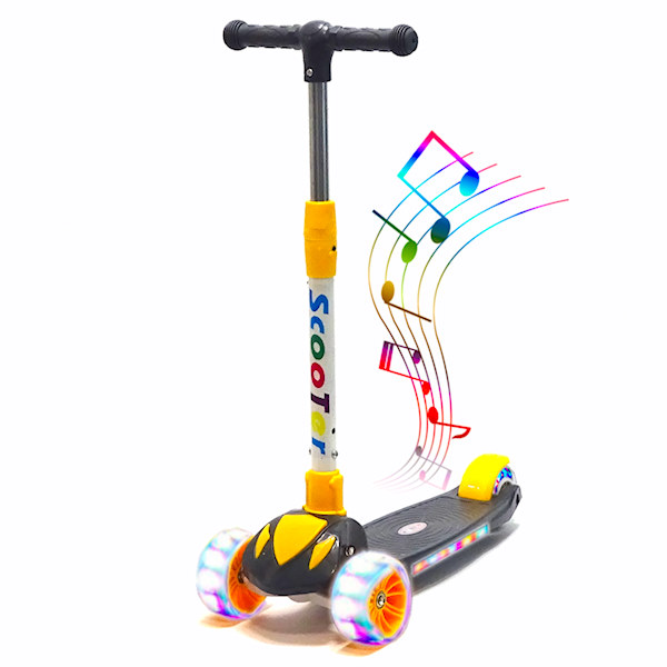 Квалитетен детски тротинет (скутер), со музика и со две предни и дупли задни светлечки тркала за дополнителна стабилност.